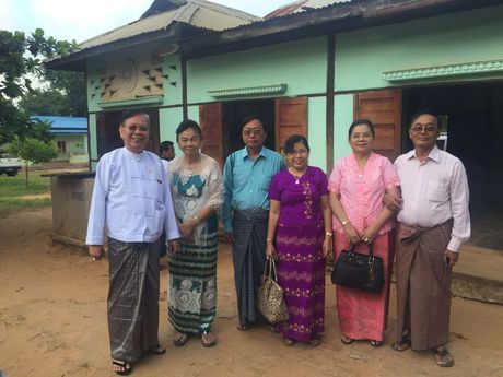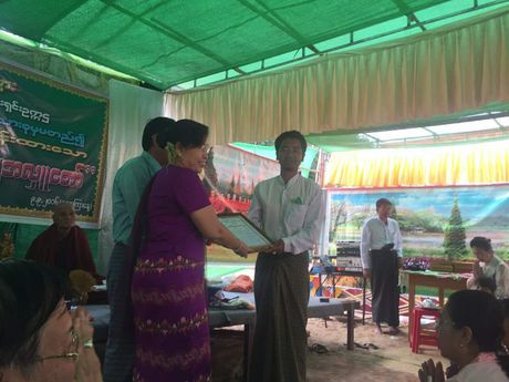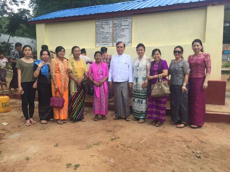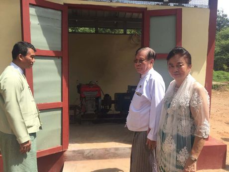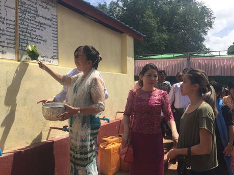 缅华基金会董事长赖松生先生暨夫人葉雪金女士贤伉俪合家及热心人士共(28)位慈善家,捐 造一口地下水井及全套抽水设备的移交仪式于9月9日在马奎省稍埠丹波北村举行,全村居民包括僧侣和男女老幼兴高彩烈参加了庆祝仪式。