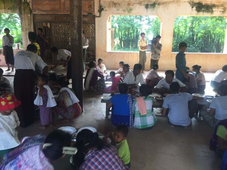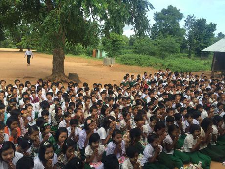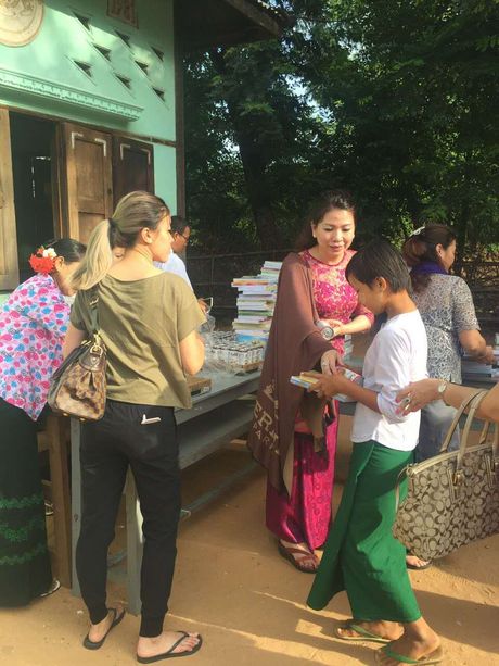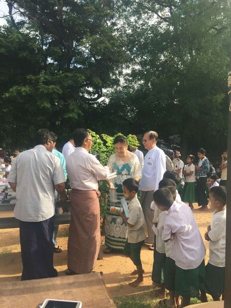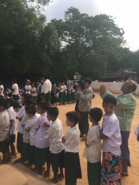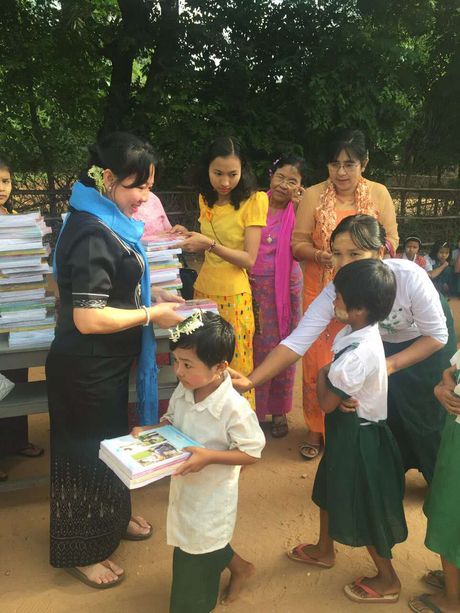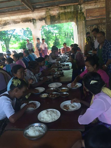 仪式完毕,赖松生董事长向全村300多个学生赠送每人一打练习本子,并依照缅甸风俗习惯,向村里高僧敬奉斋饭礼品,之后,全体村民欢快地一齐用餐。