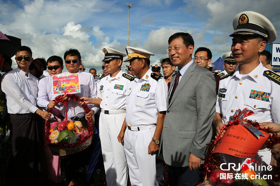 军舰扺达迪拉瓦港口时,受到缅甸国防军(海军)港口管理局长敏乌少将、海军培训军官昂索萊准将等海军负责人前来迎接。