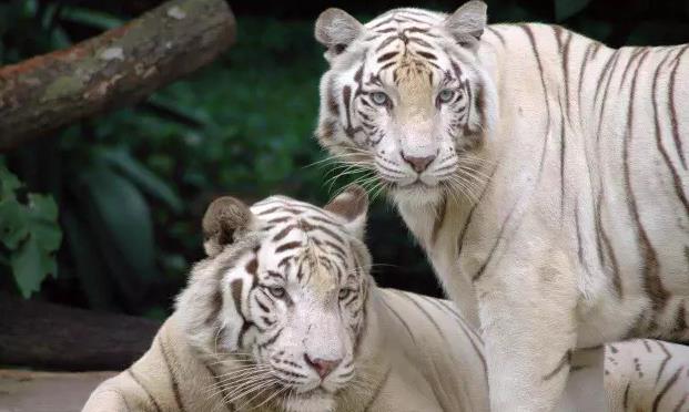 白老虎身上的条纹斑并不是黑色,而是呈深灰色。白老虎先天存在免疫力,适应性差的特性,在其它习性如独立性,健康方面,与正常老虎倒是无异。饲养白老虎是十分的不容易,所以全球仅有三百只左右,比大熊猫而要稀罕。