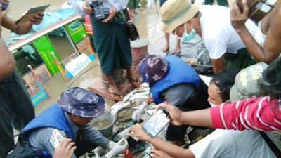 在登记该打捞上来的物件中,一件手提小旅行包 中发现两包黄金(每包30缅钹)、一手提包中有398万8千元缅币)、另一手提包 中发现一包800 万元现钞(一包)、1万6千元一包、150万8千元1包、29元5千元1包.还有196万元。其他尚有宝石手饰等,