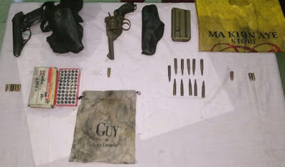 10月28日,仰光省岱枝市镇第40组侦缉小组在岱枝市入口收费站查获一男子携带一支手枪及一包子弹,子弹共21颗。