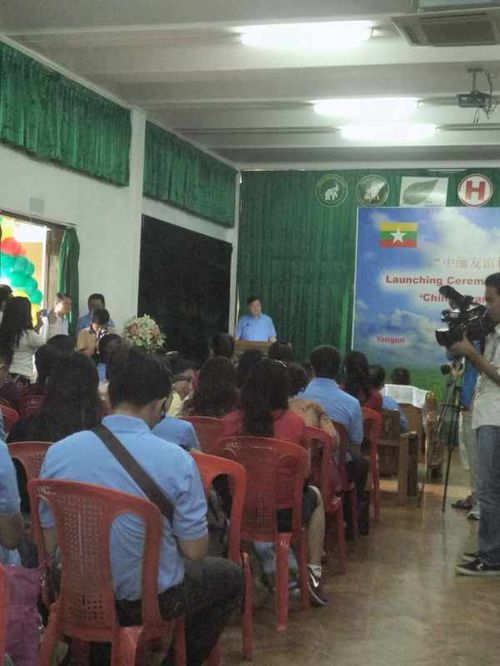 中国洪亮大使首先在会上介绍了经过双方友好协商后,中缅两国达成的在缅甸中部地区种植四万棵树苗项目、中方将提供五亿元的援助款。之后,仰光林业部吴鹏伦详细介绍双方达成的协议内容。两位负责人的讲话获得到场贵宾朋友们的热烈的掌声。