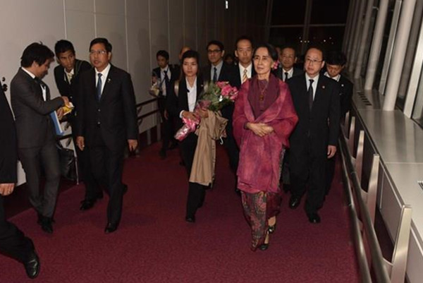 缅甸国务资政昂山素季应日本首相安倍之邀,11月1日从仰光乘机前往日本访问。