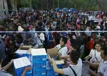 涌进来的边民实在是太多了,中国士兵四五人一排组成人墙把他们分隔成长条队伍。