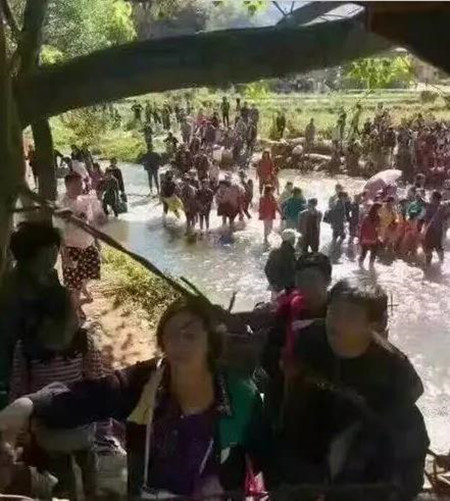 据称,中国方面撕开铁丝网让边民进入中国,摄像的人说“么么这么多的难民”,工作人员说“不要急,一个一个地过来”。