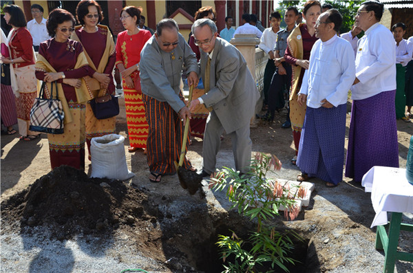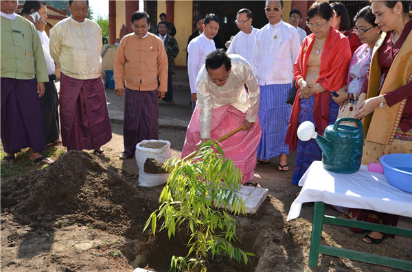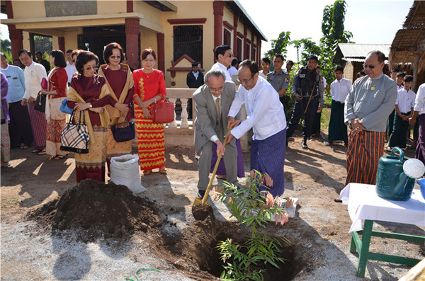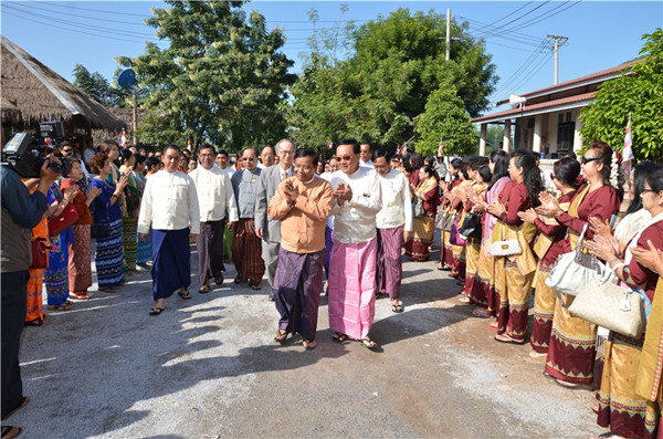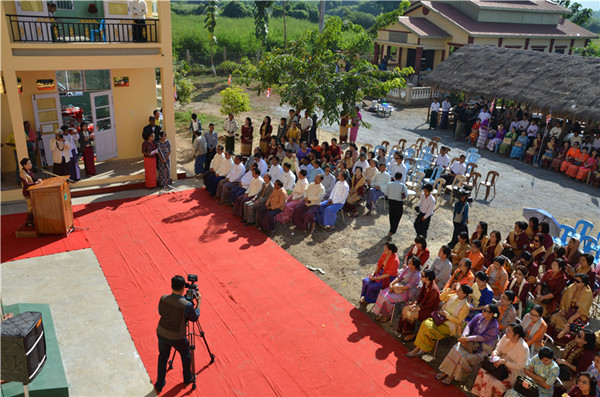 12月4日上午9:00时,位于曼德勒市东郊仰景山脚的耶特孤儿学校广场上一片欢腾。原用的茅草房教室前面一栋崭新的三层楼现代化教学楼屹立在早晨的阳光下,许多妇女衣着节日盛装,在集体拍照或者手机自拍。校园内出现十分‘罕见’的景象:许多豪华车辆不断进入,学校球场广场立马成为停车场。连接学校的‘羊肠小道’农村小路上,也到处站立着交通警察,令村民感到‘受宠若惊、惶恐不安’。有人悄悄在耳语:‘有大人(高官)就要亲临!’