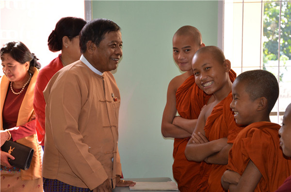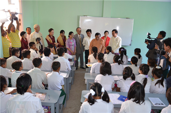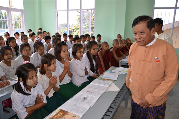 曼德勒华人为寺庙学校捐建教学楼 孩子们从茅屋走进明亮的教室 “大人”们也来了