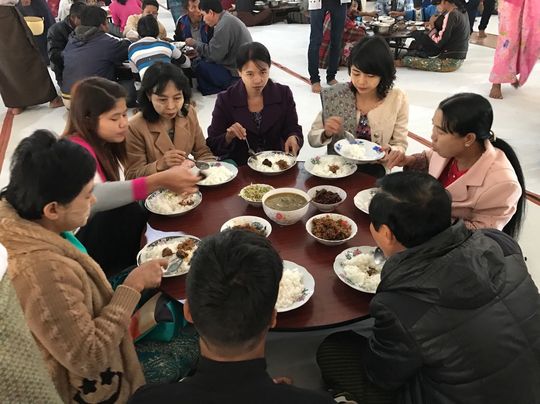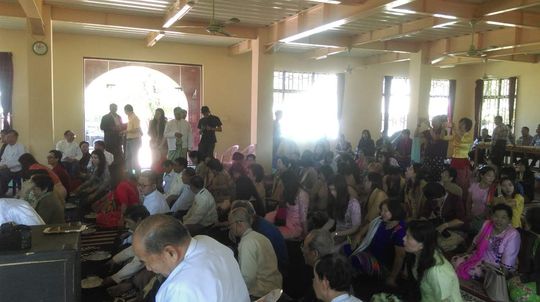 1月8日上午8时开始,缅华基金会同时在瑞喜宫佛塔院内为缅甸民众布施午餐,800多名民众高高兴兴地共同分享了纪念周恩来总理的善事活动。