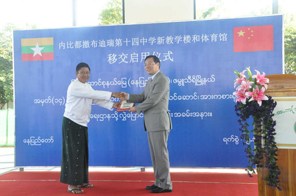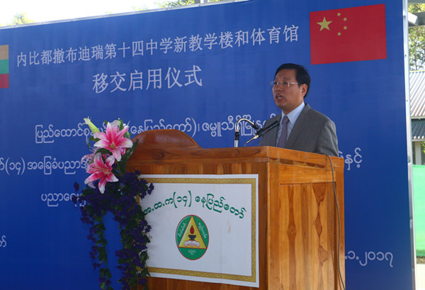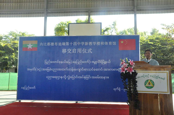 1月5日,中国驻缅甸使馆援建的“中缅友谊学校”第005号——内比都第十四中学新教学楼和体育场正式揭牌启用。洪亮大使、缅甸教育部长吴苗登基博士、十四中校长吴汉温等出席启用仪式并讲话。十四中前校长杜楠温温盛、缅甸教育部、内比都市政委员会官员、学校师生、媒体人士和中国驻缅甸使馆外交官等200余人参加了启用仪式。