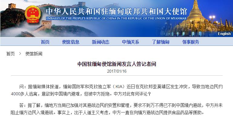 中方拒绝4000名缅甸边民到中国境内避难?中国驻缅大使馆回应
