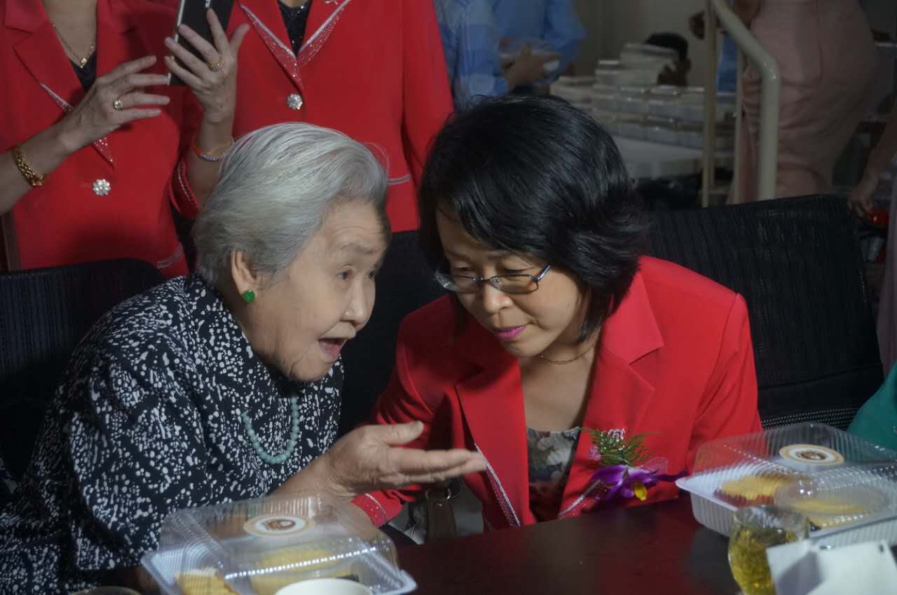 新大楼揭牌剪彩仪式后,大使夫人王雪鸿在李为华等缅华妇协主要领导的陪同下,参观华文教育中心新校舍的内部设施,并同妇协代表围绕有关在缅华文教育的发展进行深入交流。