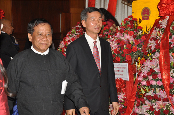 1月20日下午6时,中国驻曼德勒总领事馆2017年春节招待会在曼德勒瑞必达大酒店礼堂举行,曼德勒省省长佐敏貌与省府官员、曼德勒市市长与市府官员、曼德勒省缅中友协吴觉温副主席及代表、各大学院校校长副校长等院校代表、来自曼德勒、东枝、腊戌、大奇力、实皆、望赖、彬伍伦等缅北各市的华人社团以及华校领导、中国企业商会代表、中国留学生、志愿者等600余人参加了春节招待会。