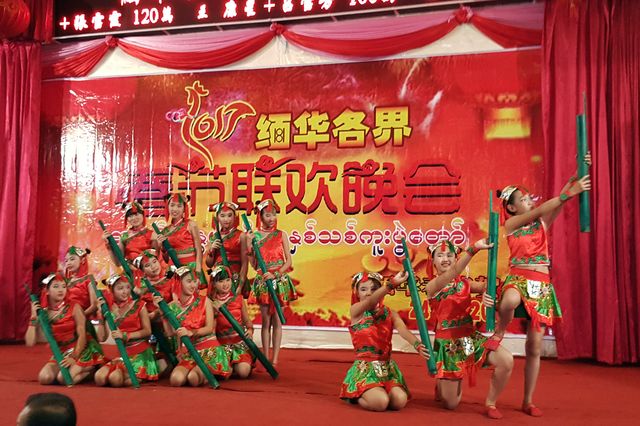 宴会开始后,缅华各侨校的学生们表演了精彩的文艺节目,使晚会高潮迭起。