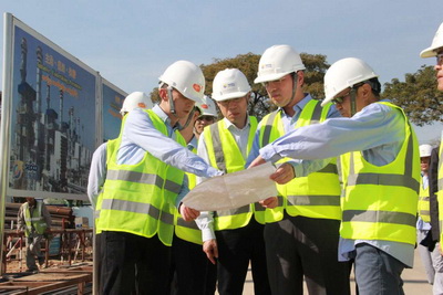 洪亮大使参观了项目现场,听取了项目建设进展情况汇报,检查了员工宿舍和食堂等生活设施状况,并对全体员工致以亲切的问候和节日的祝福。
