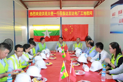 驻缅甸大使洪亮赴仰光达吉达燃气发电厂项目慰问一线工人