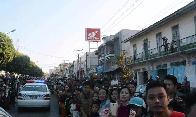 到了东枝市,更是万人空巷场面震撼,市民们热情高涨的来欢迎杜昂山素季,更为了一睹人民领袖慈祥的颜容。杜昂山素季沿途都摇下车窗向民众挥手致意,不时还伸出手来与市民握手,更令民众们是激动得热泪盈眶!