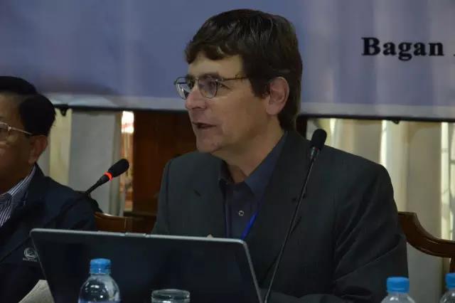 14日上午11时,缅方专家U Kyaw Oo Lwin向与会各国专家分享了他的文物修复理念。他指出,在文物修复过程中,要注意佛塔基础和各层的不稳固现象,也要避免对原建筑及建筑内的壁画、浮雕造成破坏。在去年的地震中,部分佛塔塔尖发生坍塌,对佛塔下层造成一定程度的伤害,因此在修复过程中应首先搭建保护平台,确保不会对塔体造成进一步损坏。