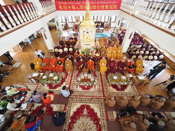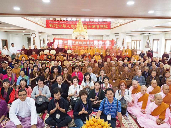 台湾“中华人间佛教联合总会”以2016年两岸交流的成功经验,于2月15日组成“两岸南北传佛教融合交流访问团”,一行百人首访缅甸进行交流,在机场即受到礼遇通关,国会议员、立委等前来接机。缅甸准教育部长乌·尼布帕瑞代表国家前来关心,联合总会回赠英文版《世界佛教美术图典》二十册。