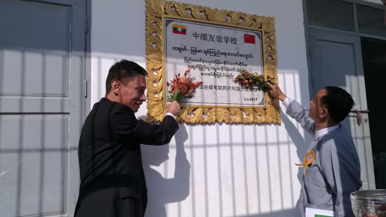 3月3日,中国驻缅甸使馆资助的第七所中缅友谊学校授牌仪式在皎漂第一中学举行。驻缅甸使馆公使衔参赞陈辰和缅甸教育部基础教育司副司长吴苗丹、胶漂县县长、胶漂县政府相关部门负责人、学校师生200余人出席。