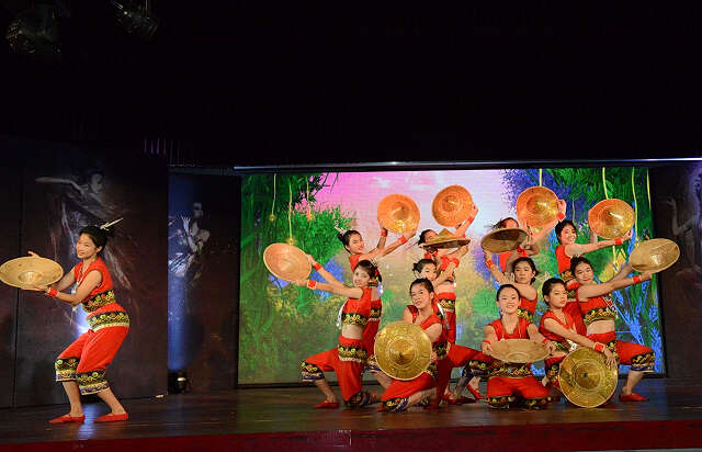 缅华妇协教育中心的学生们《欢庆鼓舞》,燃放无限的激情和欢乐,让我们的节日热热闹闹,生活红红火火。哈尼族能歌善舞,他们的歌声与竹筒相和。汉语班的孩子们踏着竹筒的回响,带来《咿板嘟》。汉语班《黎乡笠影》的小姑娘带着斗笠,踩着轻快的韵律,带我们体会黎族的风情。汉语班的《小马奔腾》,踏响大地,一群小马驹在草原上纵情驰骋,欢乐无限。
