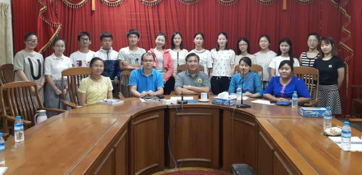 福庆学校校长缅方主任李祖清博士、中方主任李涛教授、福庆学校副校长林玲、寺庙教学点主管林仙珍博士、大学教学点主管赵紫荆博士、缅方主任助理萧珊珊老师等会见了云大留学生。