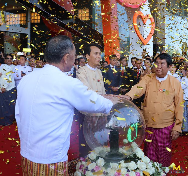 接着由仰光省行政长官吴漂敏登、仰光省议会议长吴丁貌呑、仰光省城管委员会主席(仰光市市长)吴貌貌梭以及Shwe Taung Group 主席吴艾吞按启电钮,正式开启Junction City Logo 、Junction City 购物中心、Junction City 大厦。