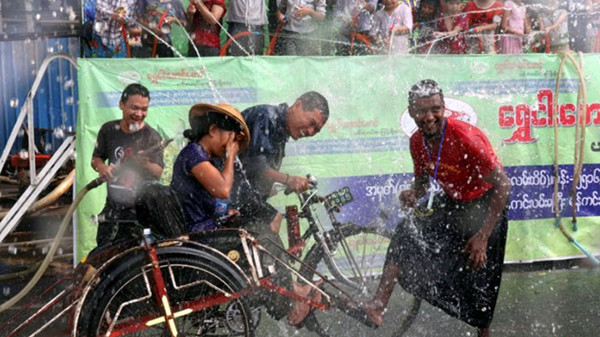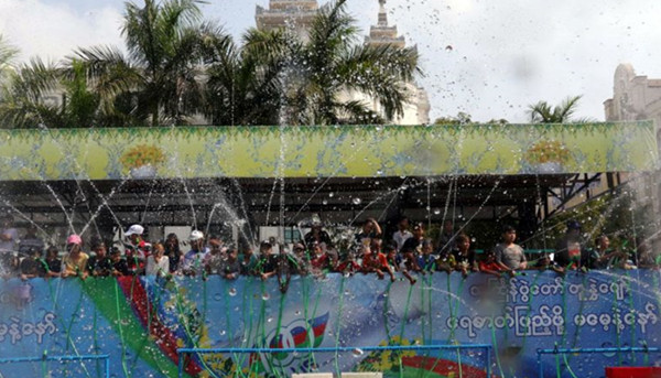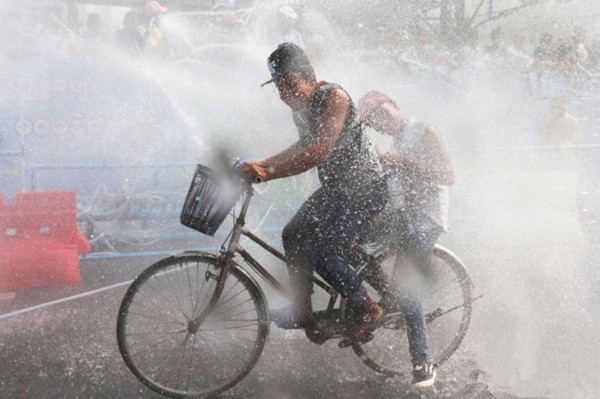 缅甸迎来泼水节 民众戏水大狂欢(组图)