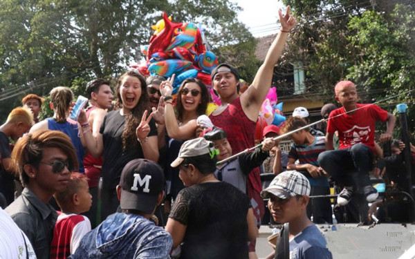 为了庆祝这个盛大的节日,缅甸各地搭建起了独具特色的泼水台,明星们在台上为大家带来歌舞表演,民众在台上用水管向台下的人群和车辆泼水,人们伴随着音乐摇摆狂欢的同时,还享受着台上泼水带来的清凉。马路上奔跑着各式各样的敞篷车和皮卡车,车斗里是准备投入“泼水大战”的男男女女以及他们的“武器”——一大桶水,他们随时准备和擦肩而过的车里面的人互泼,或是“偷袭”路边的行人。大家被泼得越多越高兴,因为水象征着吉祥和幸福。
