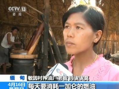 敏因村榨油厂老板 玛诶诶莫:我们正在准备改用电动机,估计最少会节省一半的成本,用柴油机的话,每天要消耗一加仑的燃油,要花3500缅币(合17.5元人民币),如果改成电动机生产的话,最多不过1500缅币(合7.5元人民币)。