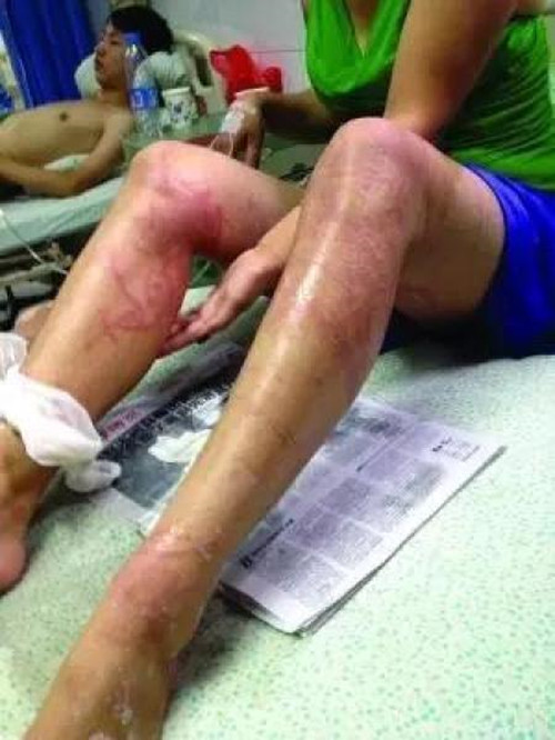 一位医学专家说,因为人体皮肤薄嫩处最易蜇伤,蜇伤后一般可在数分钟内出现触电般的刺痛感,数小时后伤区逐渐出现线状排列的有红斑的血疹,像被皮鞭抽打过似的,痒而灼痛,轻者可在20天左右自愈;严重者会发生过敏性休克症状或者急性肺水肿等,若抢救不及时,这类蜇伤病人可在短时间内死亡。