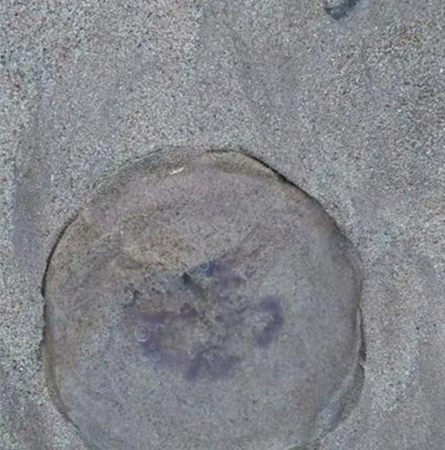 风暴过后,这些透明中带点紫色的“小家伙”聚集在沙滩上,引来不少民众的围观。