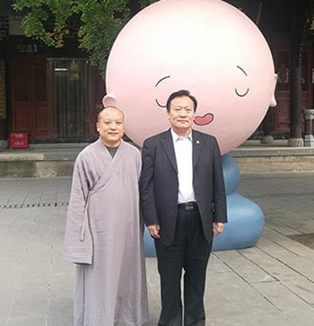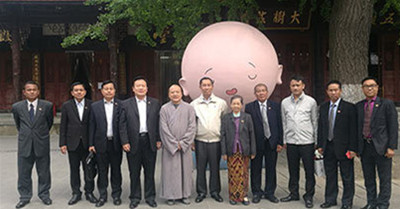在大慈寺大雄宝殿前,议长先生对大慈寺卡通像圆一小沙弥非常喜欢,详细的询问了圆一的来由,觉能法师向议长先生介绍圆一的创作是为了化解佛教与信众的鸿沟,通过动漫的形式,让大家更容易亲近佛教,议长先生听了后非常赞叹中国的发展。并很有兴趣的携夫人和圆一单独合影留念。曹卫洲主任也和觉能法师合影留念。