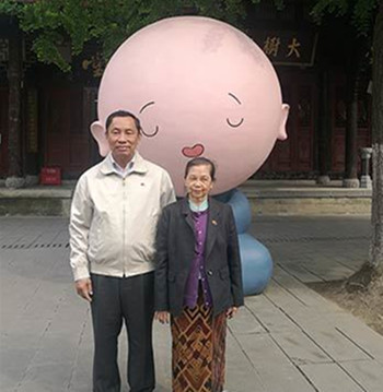 瑞曼携夫人和“圆一小沙弥”合影留念(图片来源:凤凰佛教)