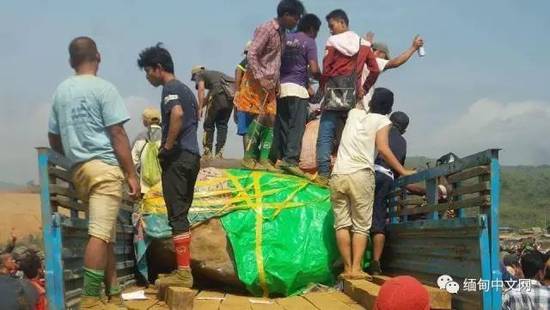 4月26日,缅甸帕敢出产了一个巨大的玉石原石,被1000多名个体玉矿拾捡者护送离开,严密看管。当地的一位村民表示,这块玉石原石重达7吨左右,是由5名个体玉矿拾捡者共同发现的。随后,矿场内便赶来1000名左右的个体玉矿拾捡者,将这个玉石原石带到莫崩村基础小学,并进行了严密看护。