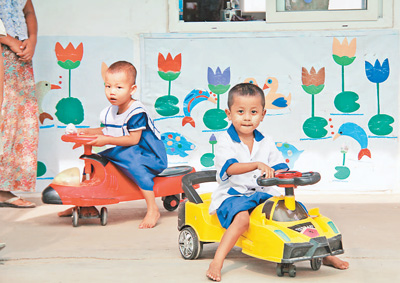 在中国万宝矿产有限公司援建的幼儿园里,当地孩子在快乐地玩耍 本报记者 张志文摄