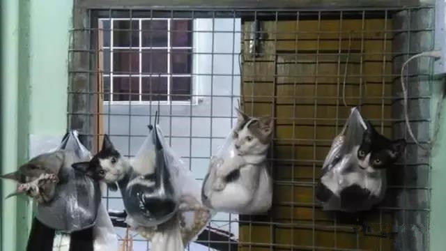 猫咪们蜷缩在塑料袋里,气定神闲,想必也是见惯了大风大浪。不然,薄薄的塑料袋,不被猫咪抓坏才怪!