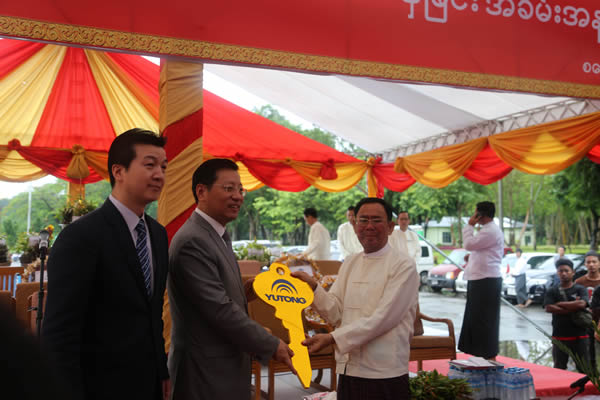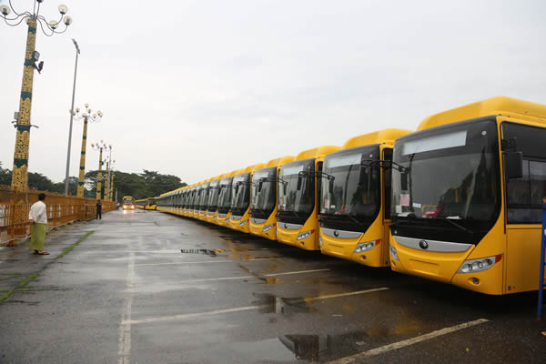 6月10日,仰光省政府在仰光人民广场举行中国出口缅甸仰光公交车移交仪式。中国驻缅甸大使洪亮、仰光省首席部长吴漂民登出席并分别致辞。仰光市长吴貌貌梭、仰光省电力、工业、交通与通讯部长杜尼拉觉以及仰光公交服务公司(YBS)、中国宇通公司、安凯公司代表等100余人出席移交仪式。