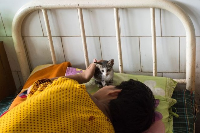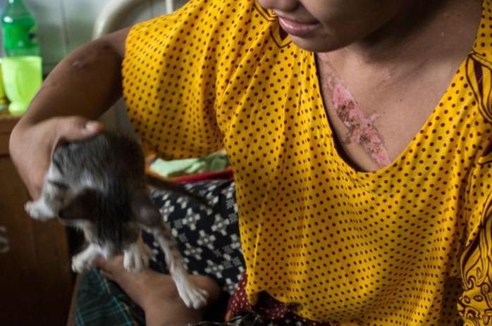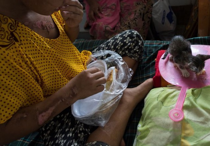 报道称,和一只小猫咪玩耍是唯一一件能让她停止哭泣的事。她目前在仰光一家医院里躺着,她说她的雇主用熨斗和沸水把她烧伤了。“他们这样做是因为我忘了告诉他们水已经沸腾了,我不想回那儿。”女孩补充说。为了保护她的身份,她已经改名。
