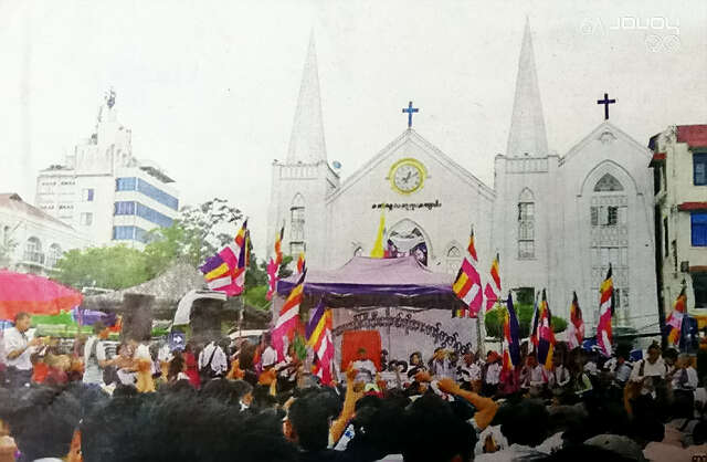 6月25日,部分僧侣和民众在仰光市政厅大厦前示威,以示纪念内比都民众谴责宗教部长杜耶吴昂哥的集会满月。