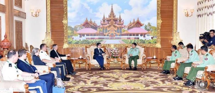 7月17日,缅军总司令敏昂莱在内比都会见了美国东亚及太平洋事务局对朝政策特别代表尹汝尚。