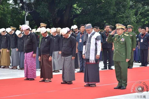 国家顾问昂山素季级、副总统敏遂、人民院议长温敏、民族院议长曼温凯丹、总检察长通通吴和缅军总司令敏昂来等国家领导出席。