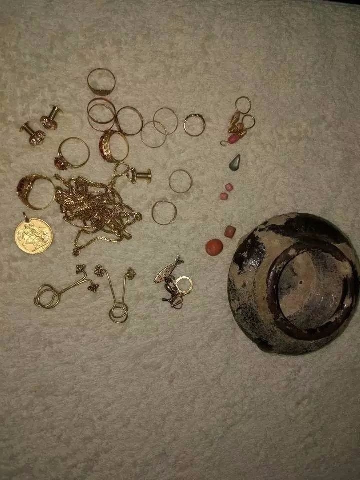古时候的人,家里想藏点什么宝贝,最稳妥的办法,就是埋到地下。所以,咱们缅甸,经常有新闻说村民挖到宝贝。这不,前几天,一个村妇在自己的房屋后面的地里面,就发现了一个土罐。本以为就是个普通的小罐子,没想到,打开罐子一看,里面竟然有不少的黄金饰品、宝石。
