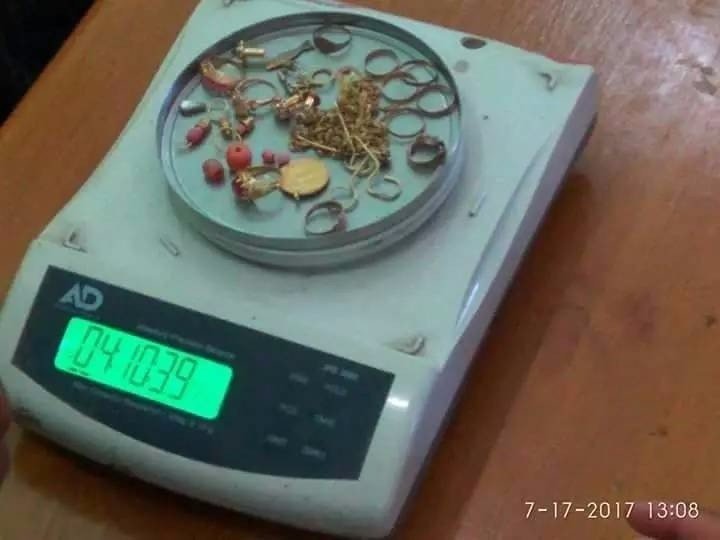 7月13日,实皆省蒙育瓦县额亚朵镇瓦窑村村民朵娥,在自家房屋附近的地里面发现了一个土罐,经过一番清洗,她发现里面藏有类似文物的贵重金属饰品,总重达到了4甲多。