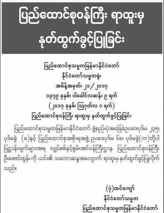 据缅甸缅康网8月2日报道,昨天晚上由总统签署了核准联邦部长的辞职令,总统府发布的第21/2017文令中指出根据缅甸联邦共和国宪法第235条(B)款和联邦政府法律第68条(A)项,电力与能源部联邦部长吴培欣通的个人辞职意愿政府给予批准,即时辞去联邦部长的职务。