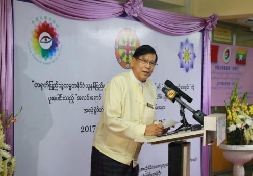 8月19日,中国云南省缅甸“光明行”公益活动启动仪式在仰光迪德谷瑞比罕医院举行。中国驻缅甸使馆参赞杨守征、云南省人民对外友好协会会长周红、云南省卫生和计划生育委员会主任李玛琳、缅甸医疗协会主席觉腊博士、仰光迪德谷瑞比罕医院院长阿信喀玛迪瑞林格法师、维萨卡基金会主席温敏蒂以及缅甸白内障患者代表等近300人参加仪式。