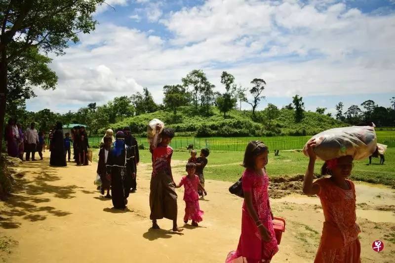 缅甸若开邦周五爆发武装冲突后,大批罗兴亚难民包括许多妇女及小孩,纷纷逃往孟加拉避难。