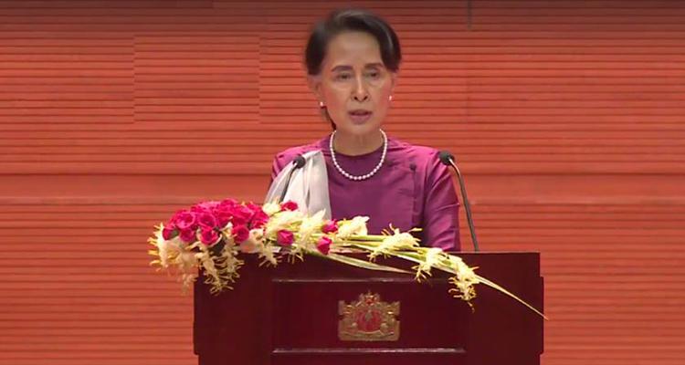 国务资政杜昂山素季今天在内比都第二缅甸会议大厅发表关于“和平与民族和解”的国家政策主旨讲话中表示,国家将经过审核,接受因遭受恐怖袭击而逃离家园的人们返回原地。