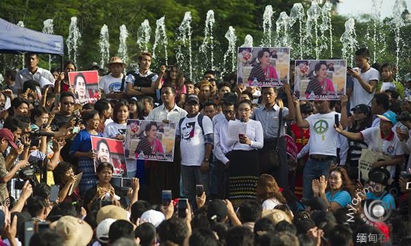 仰光市举行支持昂山素季的示威活动