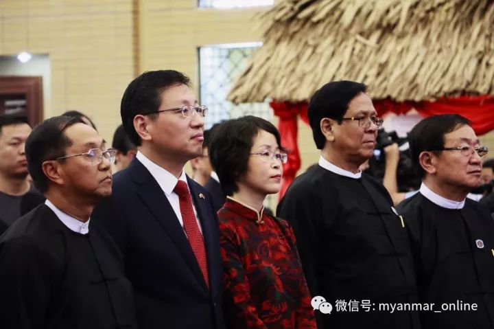 中国驻缅大使洪亮(前排左一)同缅甸副总统敏瑞